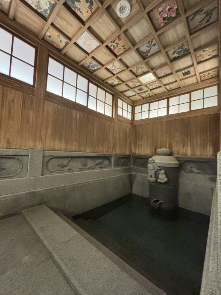 天井の模様が特徴的で、お湯に浸かりながらぼーっと眺めていると、なんだか贅沢な気持ちになってきます。
