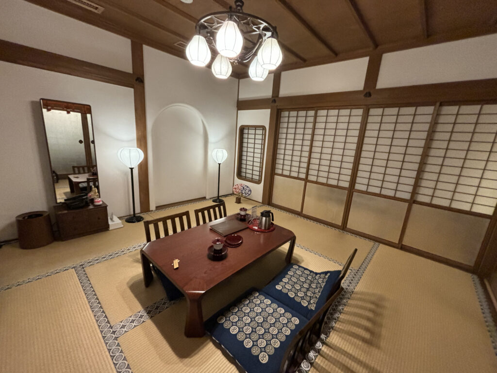 道後温泉本館の個室と違い、窓はなく部屋は少し薄暗いですが、道後温泉本館の個室より広々していて畳でゴロゴロくつろいだり、子どもはハイハイで動き回りやすかったり、子連れでもゆっくり過ごせました。