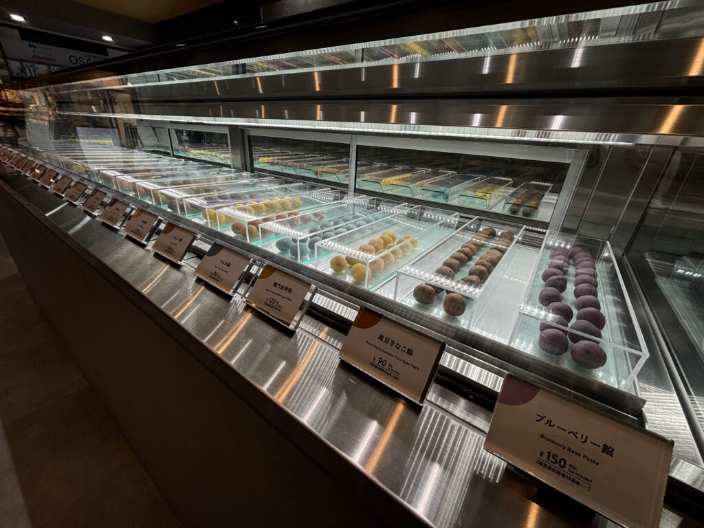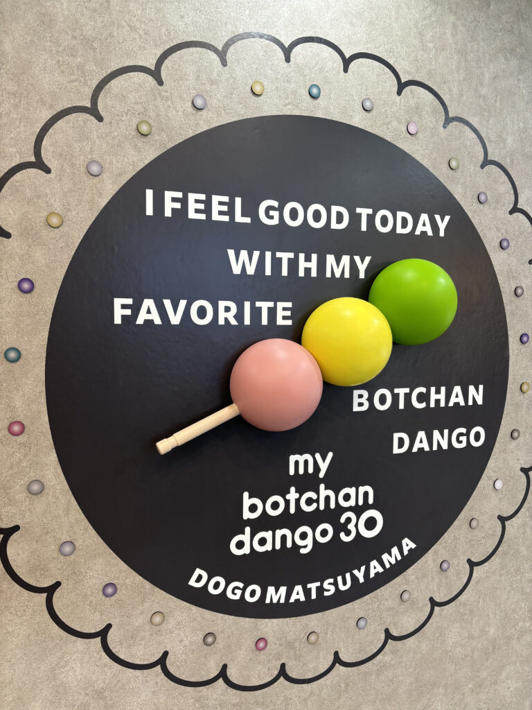まずは「my botchan dango 30」へ。松山の銘菓である坊ちゃん団子ですが、こちらでは自分の好きなお団子をショーケースから3つ選んで”マイ坊っちゃん団子”が作れます。